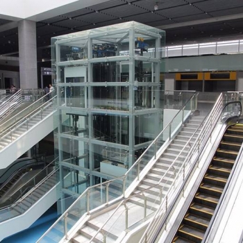 江西观光电梯一种以电动机为动力的垂直升降机,装有箱状吊舱,用于多层建筑乘人或载运货物。有一面或几面的井道壁和轿厢壁是透明材料,乘客在乘坐电梯时,可以观看轿厢外的景物。
